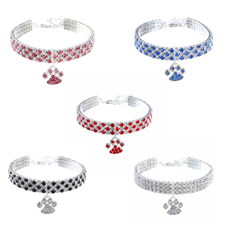 Rhinestone Cute Paw Dog Collar – Adjustable Jewelry Accessory for Pets