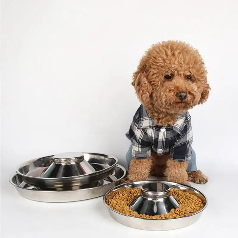Keep mealtime neat and easy with our Stainless Steel Puppy Feeding Bowl. Designed to accommodate multiple puppies, its elevated center and low rim prevent spills, discourage walking or sleeping in the food, and ensure relaxed feeding. Crafted from durable stainless steel, this bowl is ideal for puppies learning to eat together.